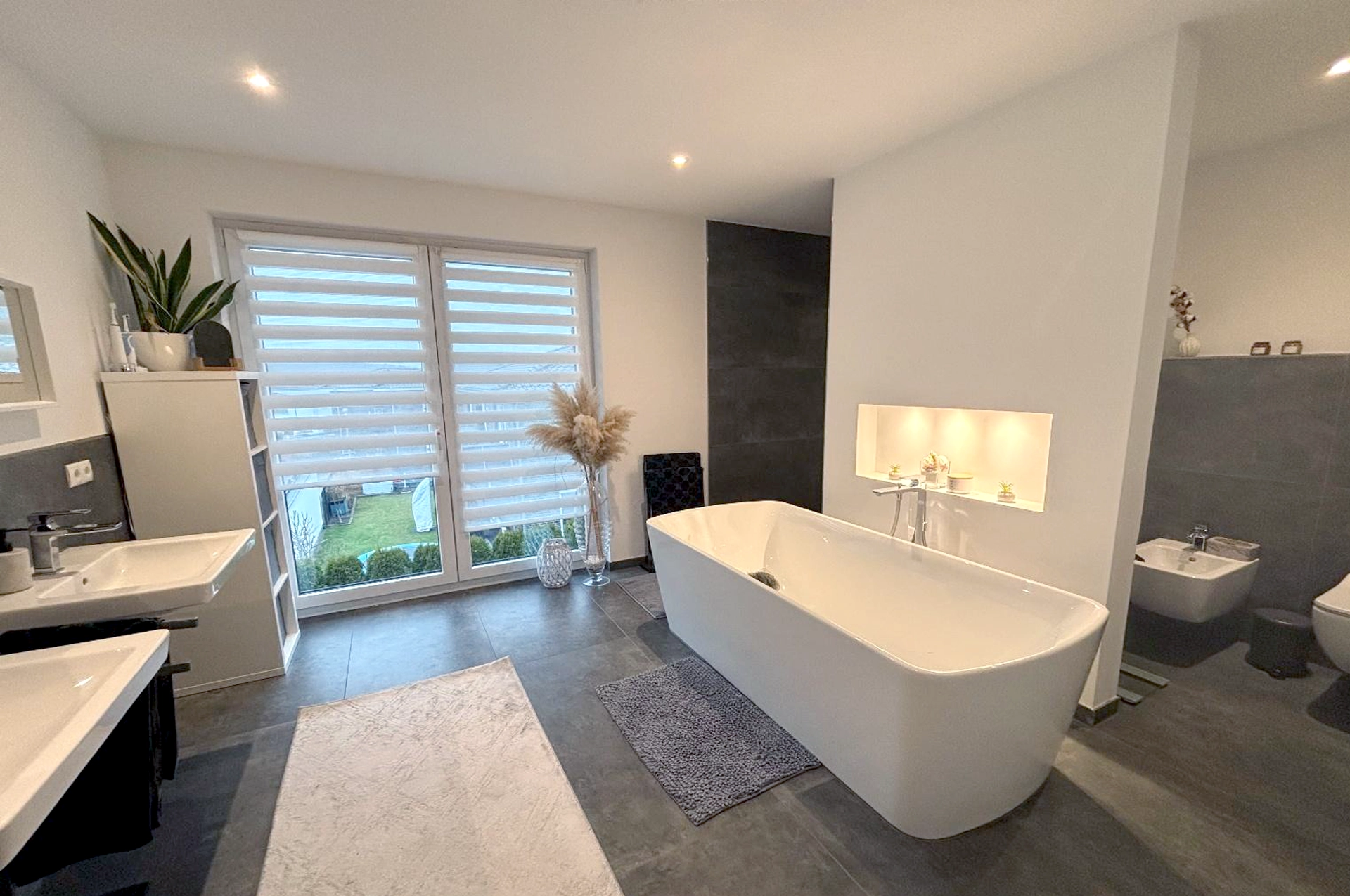 Garage: Große Doppelgarage mit elektrischem Sektionaltor und direktem Zugang ins Haus und angrenzenden beheiztem Raum